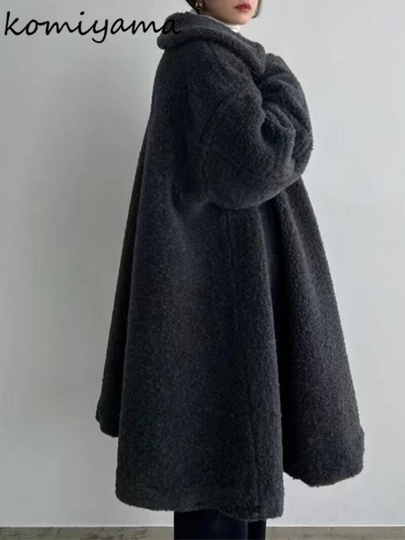小宮山秋冬シングルブレストラムウールジャケット日本暖かいコート無地ラペル長袖 Y2k トップス ロング オータム 秋物 ウィンター 冬物 ソリッドカラー