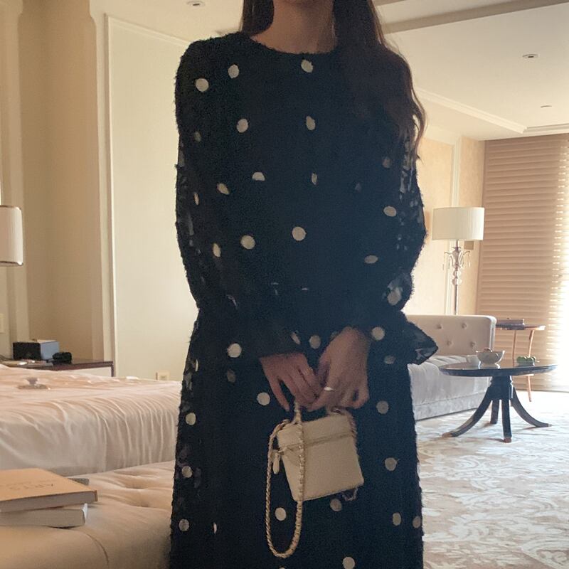 Komiyama 3d フローラル フロック ドット ドレス ロング スリーブ Vestidos De Spring ジェントル ドレス レディース ローブ 長袖 スプリング 春物 花柄 | eight