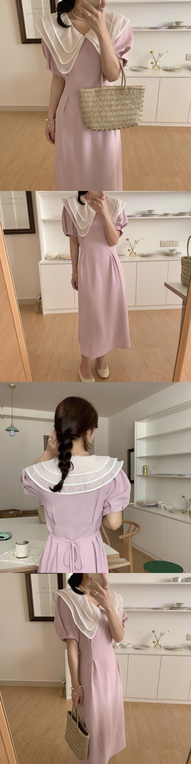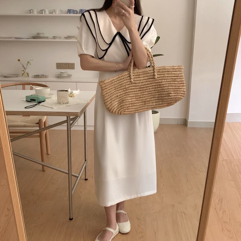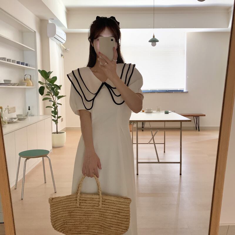 Komiyama ヒットカラーピーターパンカラードレス Vestidos 夏パフ半袖ドレス女性甘いローブ ショート ハーフスリーブ 大人ガーリー スウィート キュート カジュアル サマー 夏物 | eight