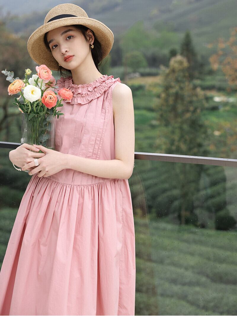 夏スウィート O ネックシャーリングドレススタイル巾着ウエストドレス女性気質オフィスレディローブ 大人ガーリー キュート カジュアル サマー 夏物 Oネック 会社 学校 通勤や通学にも | eight