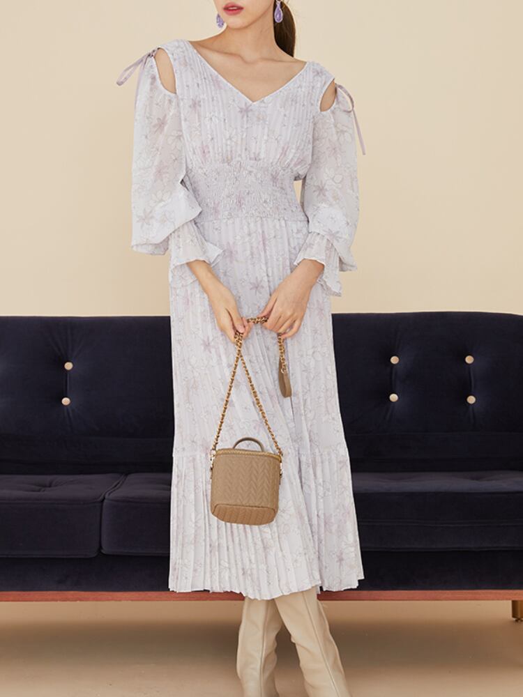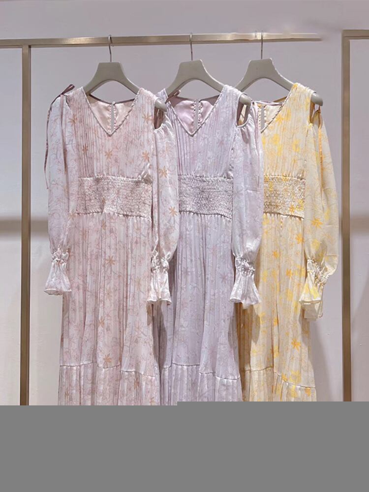 Feminino ウエストプリーツ Vestidos レースアップオフショルダーロングスリーブドレス春甘いドレス女性 V ネックローブ 長袖 大人ガーリー スウィート キュート カジュアル スプリング 春物 Vネック | eight