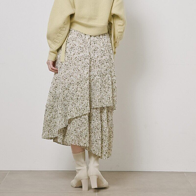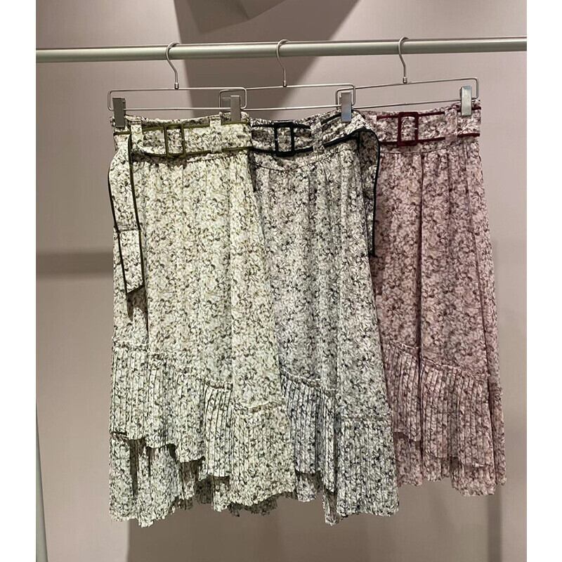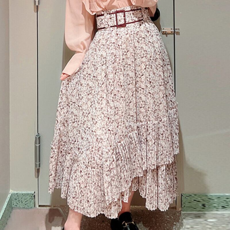シックな不規則なプリーツ スカート甘いプリント レディース スカート レース アップ ウエスト段ファルダス春美的ペチコート 大人ガーリー スウィート キュート カジュアル スプリング 春物 レースアップ | eight