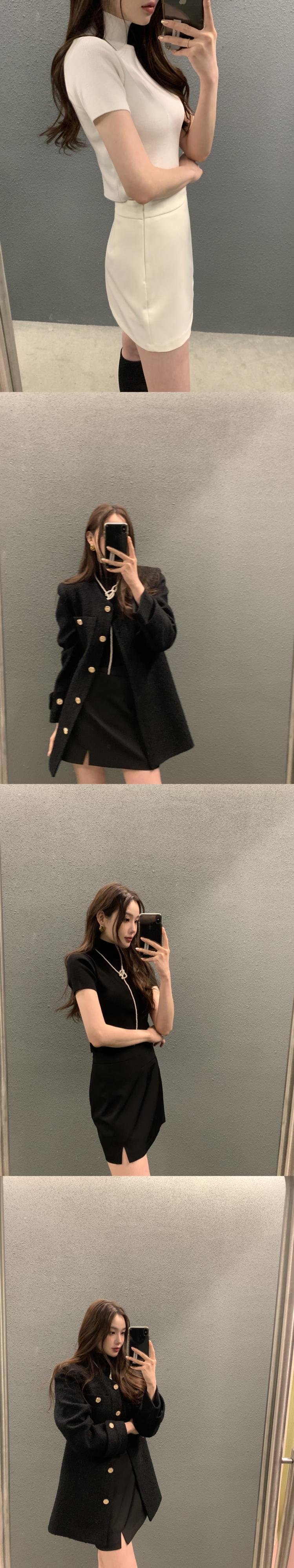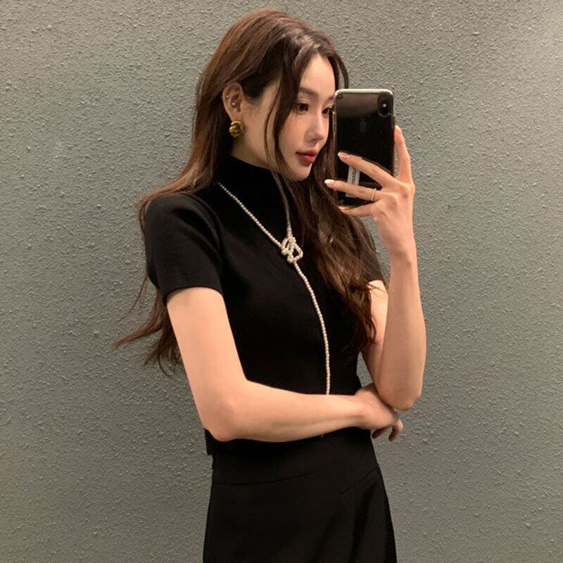 小宮山モックネック半袖セーター女性春夏 Y2k 服無地ベーシックニット Feminino プルオーバートップス ショート ハーフスリーブ スプリング 春物 サマー 夏物 ソリッドカラー | eight