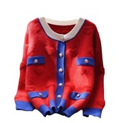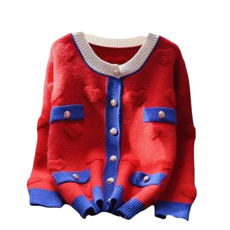 Komiyama ヒットカラー O ネックセーター女性スウィート 3d ハートカーディガン秋冬服シングルブレストニットトップス 大人ガーリー キュート カジュアル オータム 秋物 ウィンター 冬物 Oネック | eight