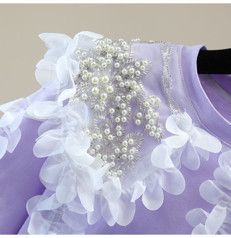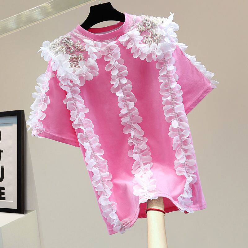 甘いシックなレースヘビー Daimonds パッチワーク Tシャツ女性の夏の O ネック半袖トップス Y2k 服 ショート ハーフスリーブ 大人ガーリー スウィート キュート カジュアル サマー 夏物 Oネック | eight