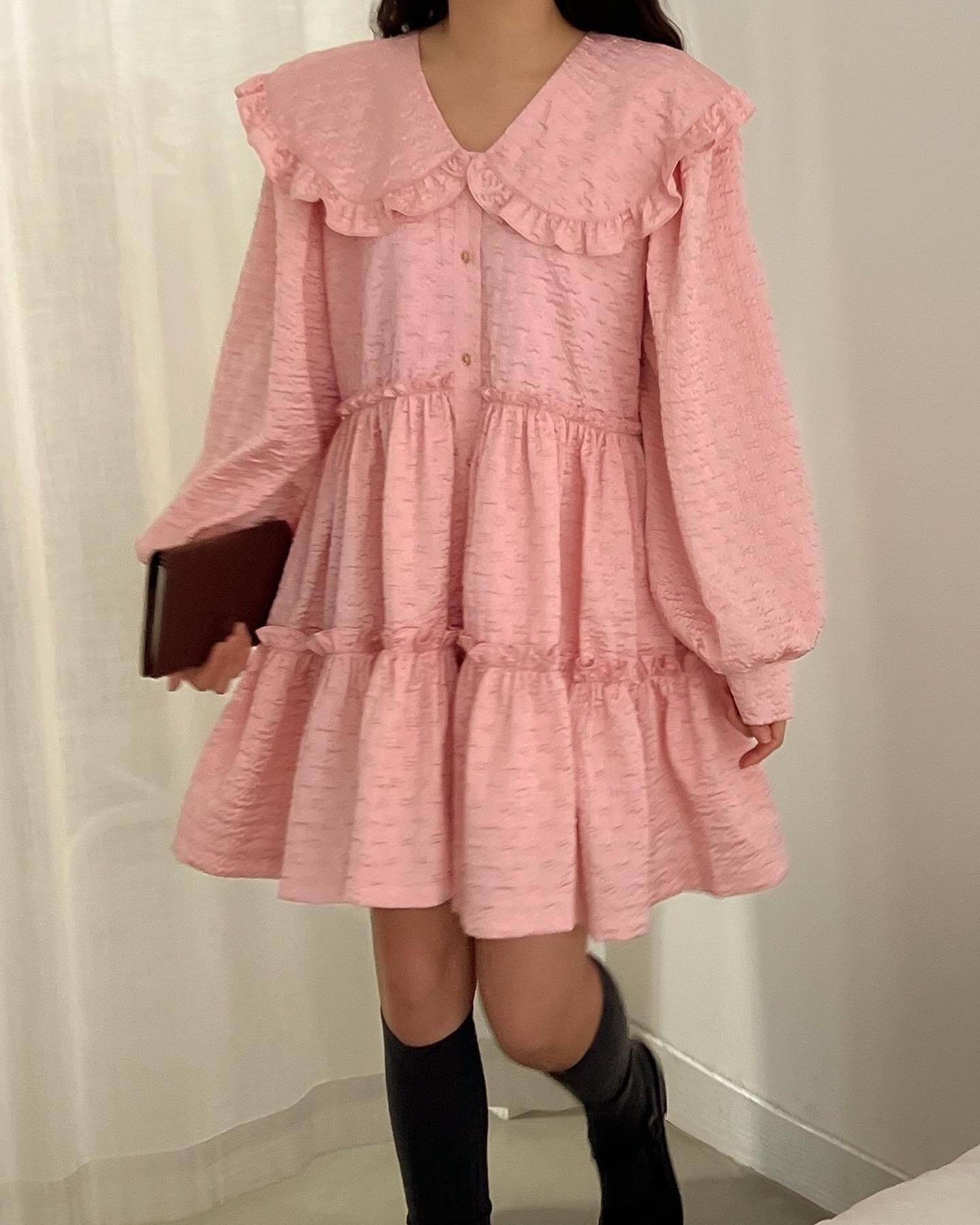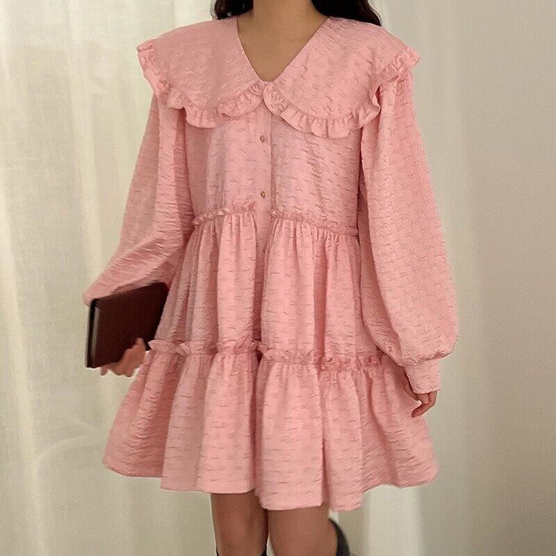 Komiyama Sweet Fungus シャーリングドレスシックなピーターパンの襟 Vestidos 春ドレス女性 3d プリーツミニローブ 大人ガーリー スウィート キュート カジュアル スプリング 春物 | eight