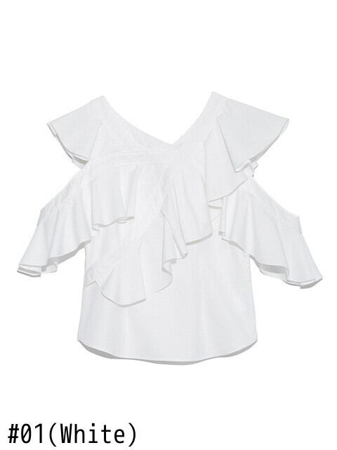 セクシーなオフショルダー不規則なフリルパッチワークブラウス女性の夏の気質 V ネックシャツトップス甘いシック ラッフル 大人ガーリー スウィート キュート カジュアル サマー 夏物 Vネック | eight