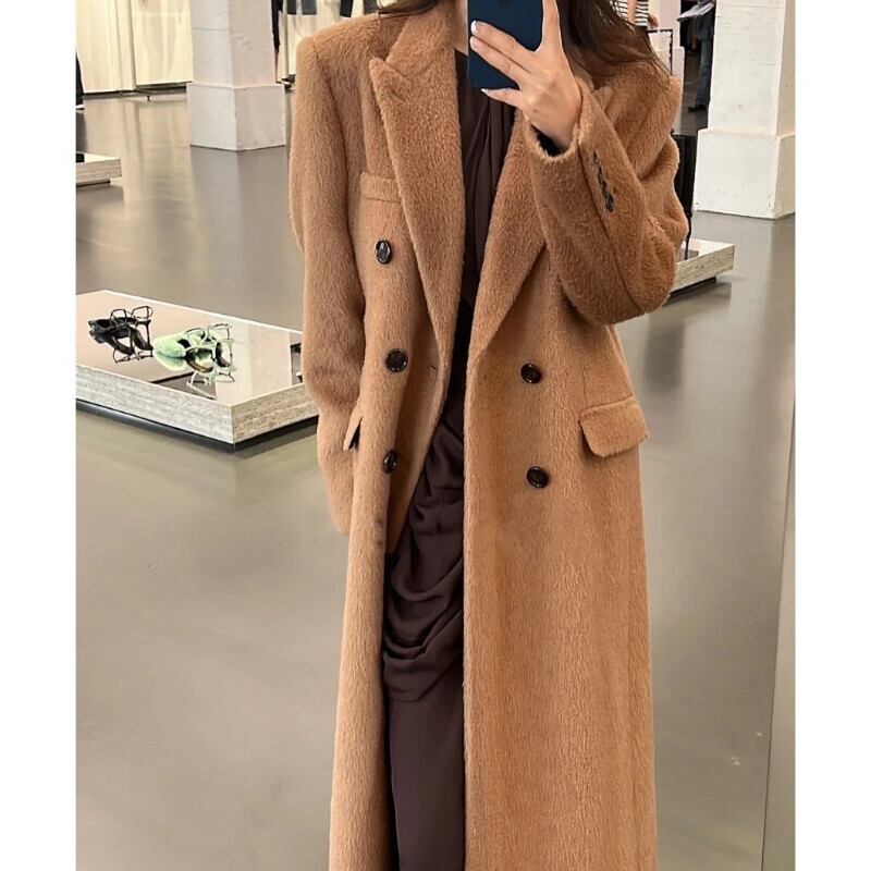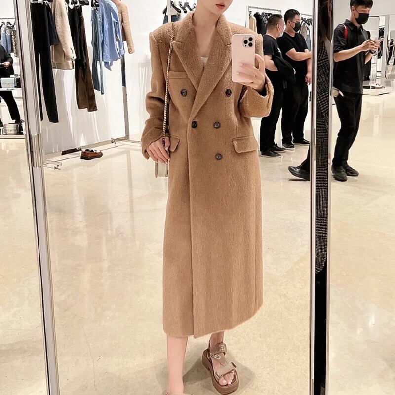 Komiyama ダブルブレストウールコート無地ノッチ長袖衣装秋冬服女性 ese ジャケット ロング オータム 秋物 ウィンター 冬物 ソリッドカラー