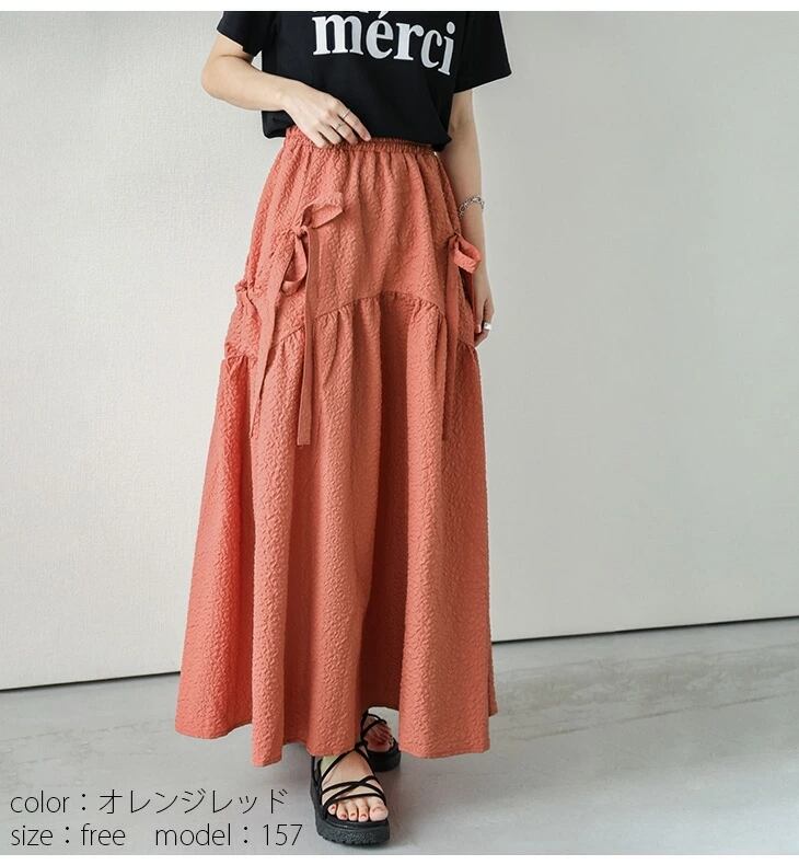 Komiyama 甘い包帯弓スカート 3d ジャカード スカート レディース ビッグ スイング ペチコート 弾性ウエスト シャーリング Ropa リボン エラスティック 伸縮 大人ガーリー スウィート キュート カジュアル | eight