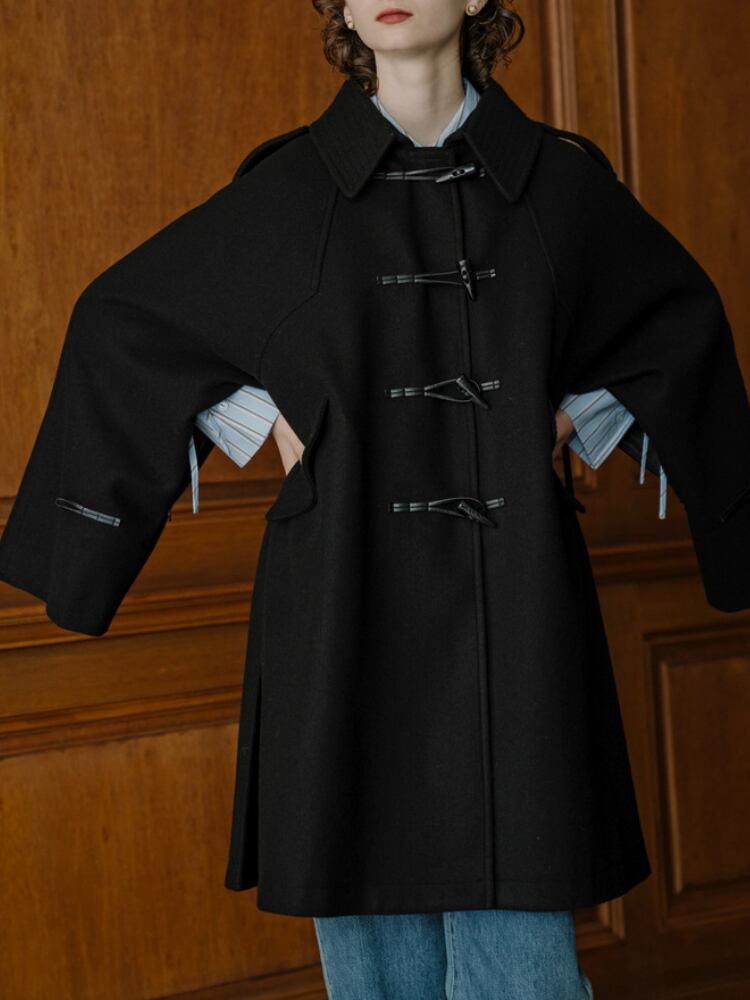 小宮山ホーンボタンレースアップコートルーズラペルジャケット秋冬衣装長袖コート女性 ロング オータム 秋物 ウィンター 冬物