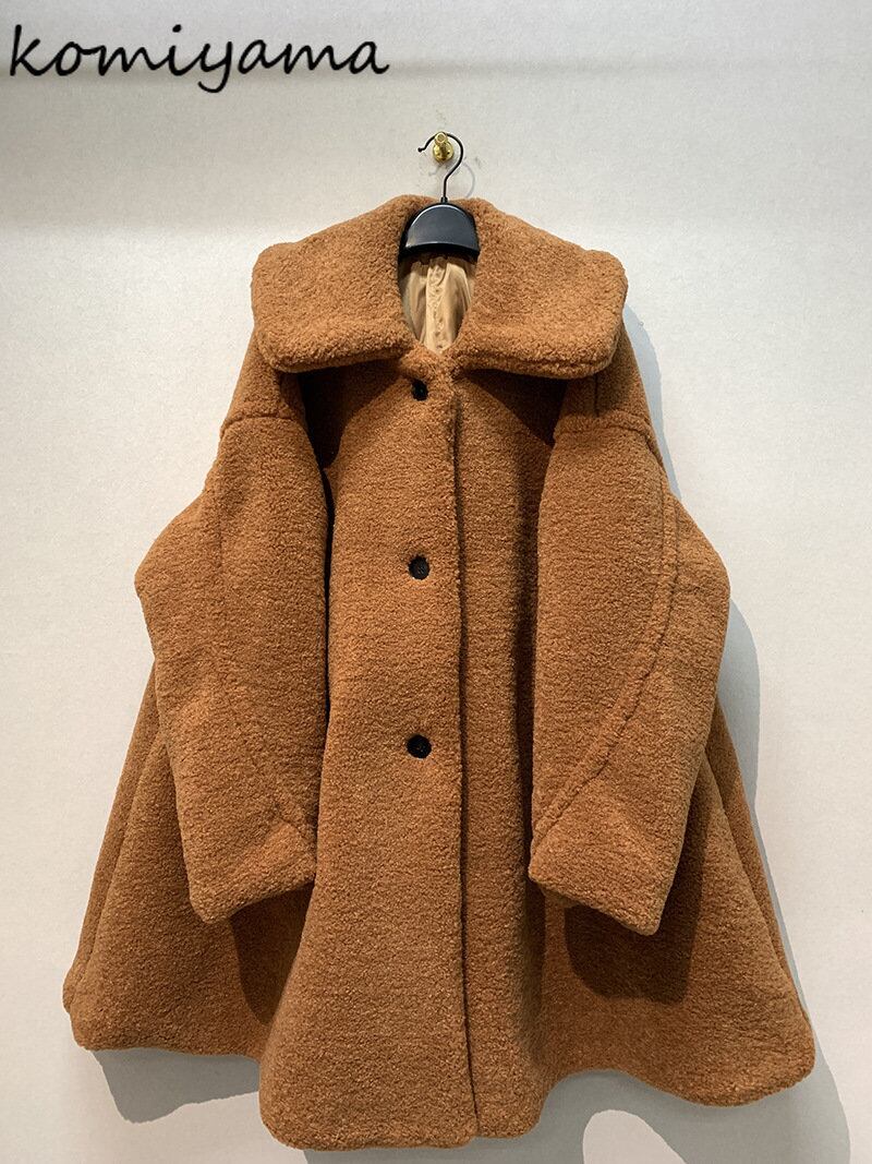 小宮山秋冬シングルブレストラムウールジャケット日本暖かいコート無地ラペル長袖 Y2k トップス ロング オータム 秋物 ウィンター 冬物 ソリッドカラー