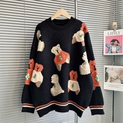Komiyama おかしい漫画クマセーター O ネック長袖 Y2k 服甘いニットプルオーバートップス秋冬衣装 ロング 大人ガーリー スウィート キュート カジュアル オータム 秋物 ウィンター 冬物 Oネック | eight