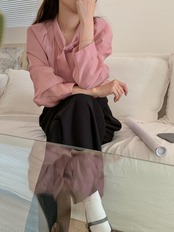 [コミヤマ] スタンドカラー レースアップシャツ ブラウス 無地 トップス 甘シャツ 春服 レディース 大人ガーリー スウィート キュート カジュアル スプリング 春物 ソリッドカラー | eight