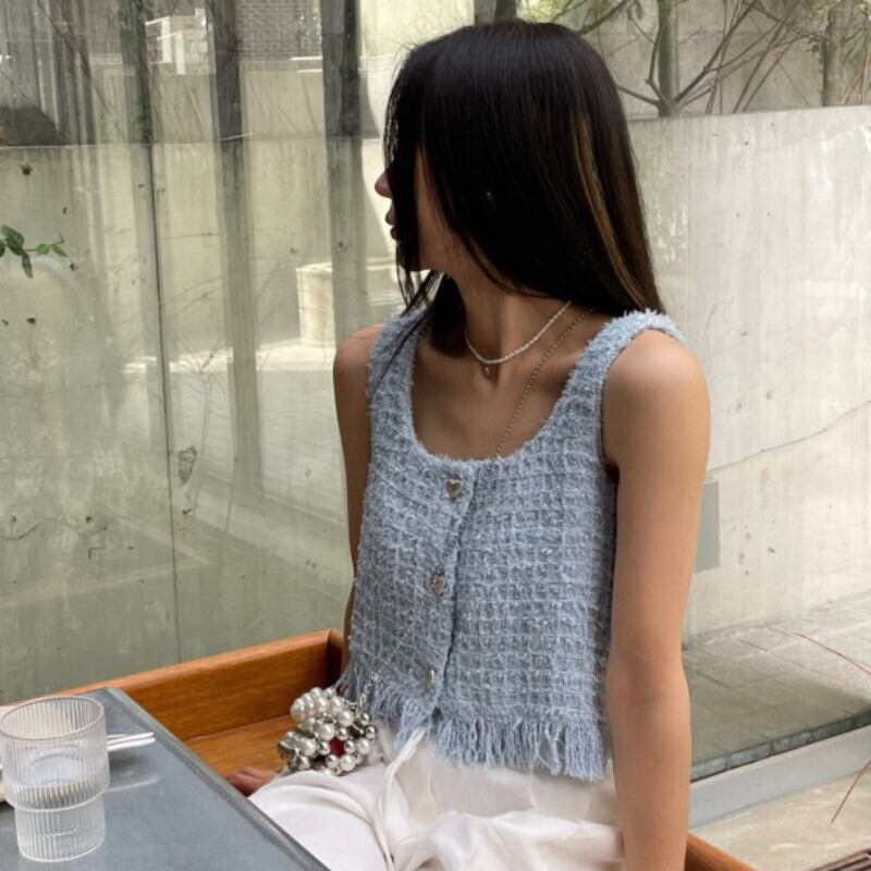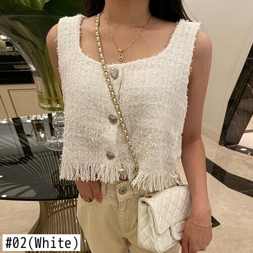 Komiyama Heart シングルブレスト Tel Y2k 服 スクエアカラー タンクトップ スモールフレグランス Tシャツ ツイード ノースリーブ クロップ Tシャツ スクウェア | eight