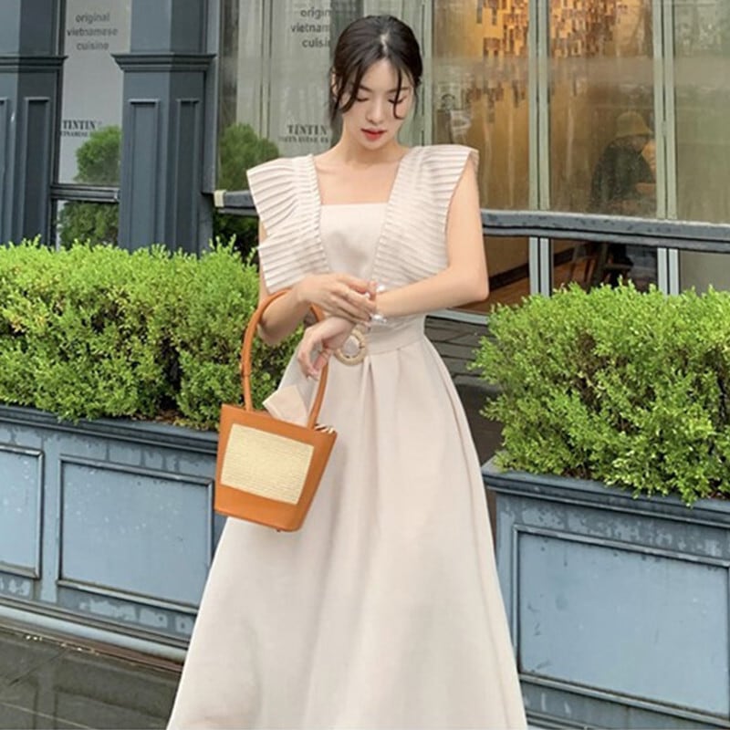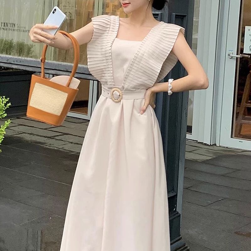 小宮山フレンチスクエアカラー Vestidos 夏シャーリングパッチワークフライングスリーブドレス甘いスリムウエスト A ラインローブ 大人ガーリー スウィート キュート カジュアル サマー 夏物 Aライン スクウェア | eight