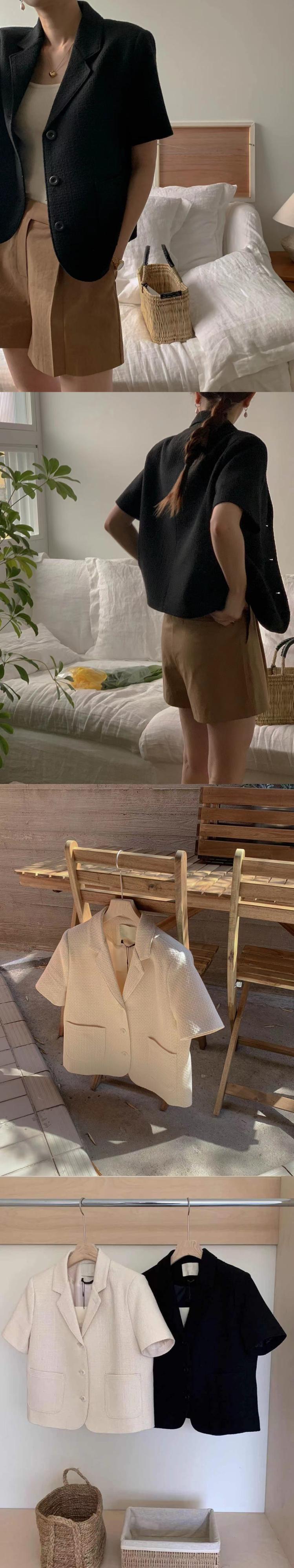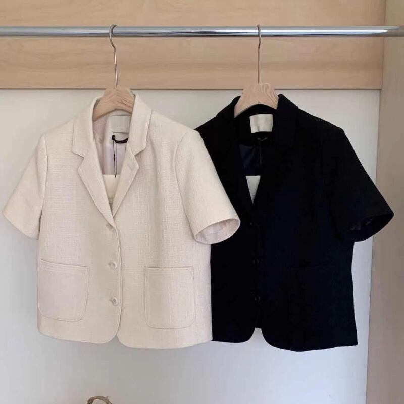 Komiyama ノッチドカラーツイードジャケット春夏服半袖コートダブルポケット Outwears ショート ハーフスリーブ スプリング 春物 サマー 夏物