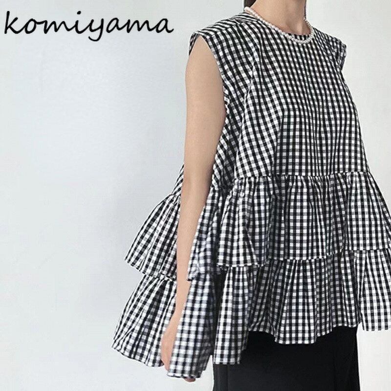 小宮山 ese Sweet Cake Bottom シャツ 夏 Oネック ノースリーブ チェックシャツ ブラウス ゆったり プルオーバー 大人ガーリー スウィート キュート カジュアル サマー 夏物 | eight