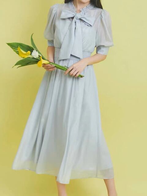 甘い真菌レースアップボウドレス半袖プリント Vestidos 夏新鮮ドレスウエストプリーツローブ ショート リボン ハーフスリーブ 大人ガーリー スウィート キュート カジュアル サマー 夏物 | eight