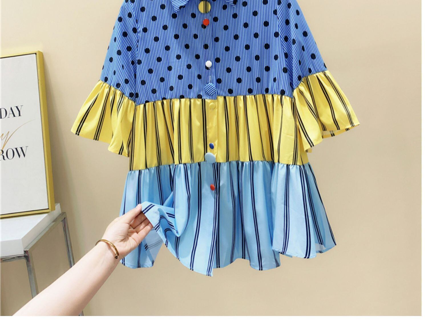 コミヤマ コントラストカラー ストライプ ドット プリント Tシャツ ルーズラペル Y2k トップス 夏 Ropa スウィート Tシャツ 大人ガーリー キュート カジュアル サマー 夏物 | eight