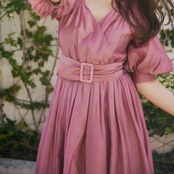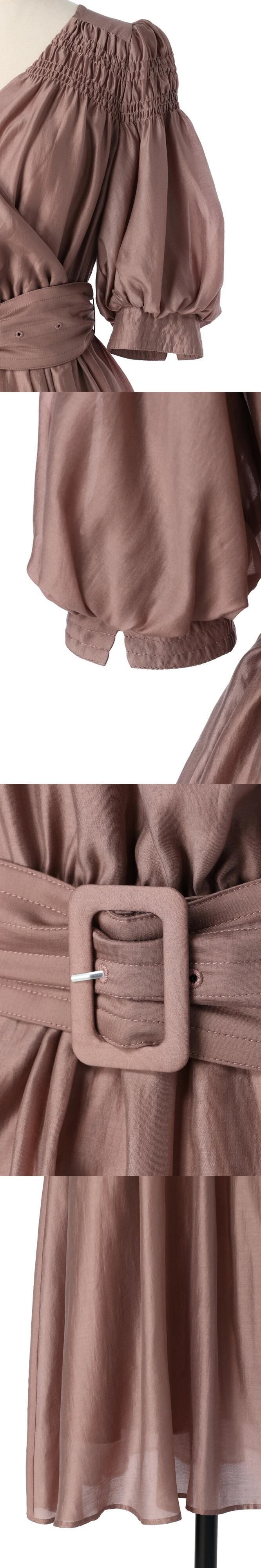夏 V ネックパフスリーブローブスタイル甘い光沢あるドレスレースアップウエストドレープ Vestido Feminino 大人ガーリー スウィート キュート カジュアル サマー 夏物 Vネック | eight