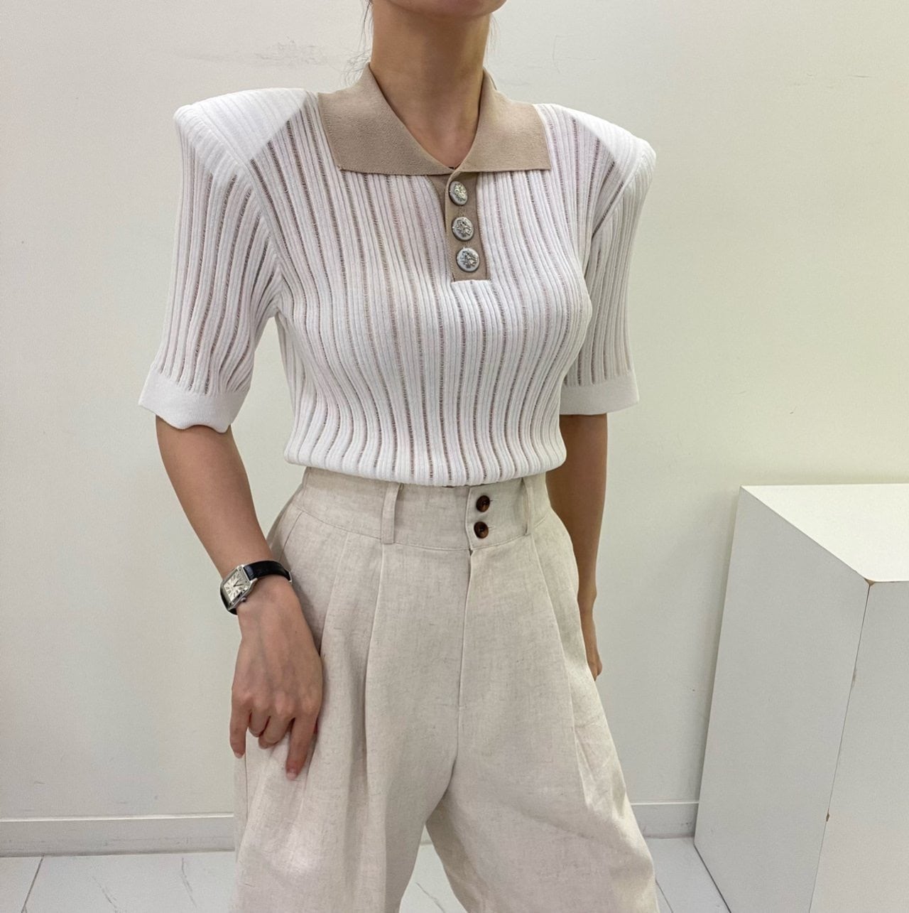 洗濯で取れるような汚れや簡単に直せる程度のボタンの緩み、縫製の歪み、シワ、多少のほつれなどは(クレーム対象外)になりますので、予めご了承ください。
