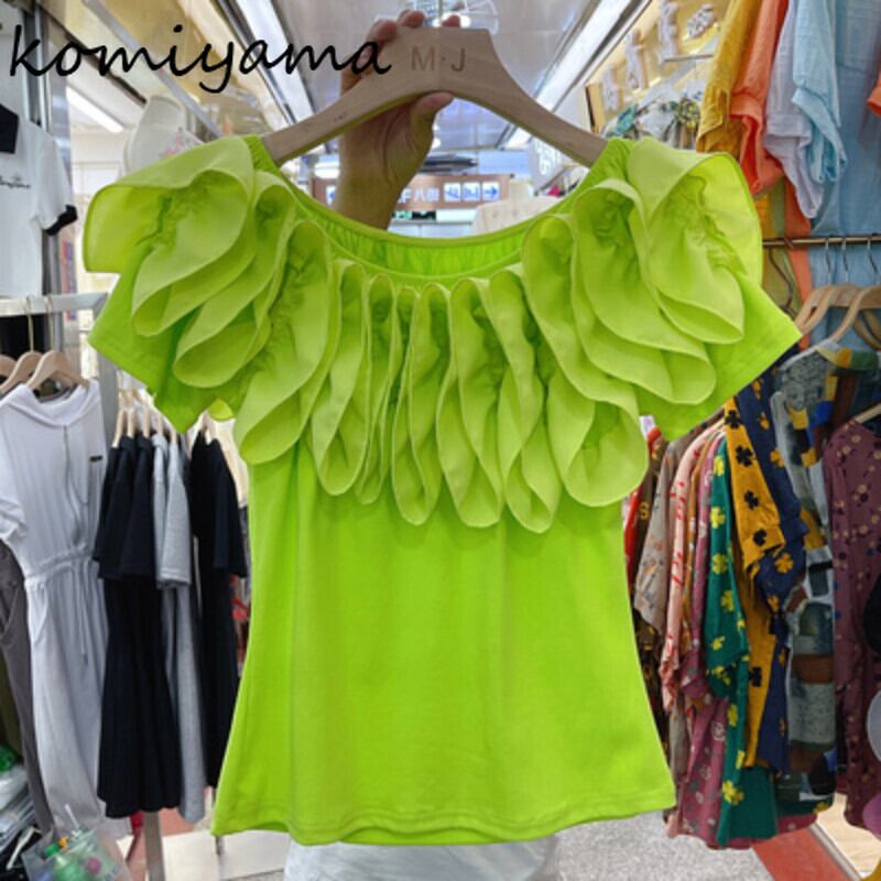 Komiyama パッチワーク 3D フラワー Tシャツ Feminino オフショルダー Y2k トップス サマー ロパ 半袖 Tシャツ ショート ハーフスリーブ 夏物 フラワーデザイン | eight