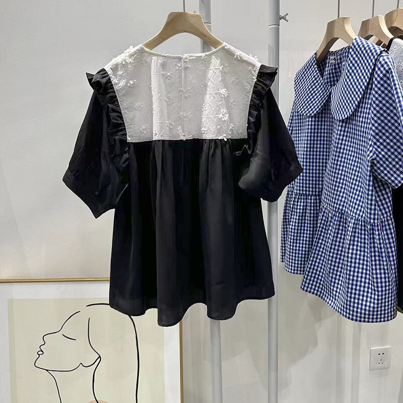 Komiyama ヒットカラーフリルシャツブラウス 3d 花ルーズ O ネックシャツトップス夏甘い服 ラッフル 大人ガーリー スウィート キュート カジュアル サマー 夏物 花柄 Oネック | eight