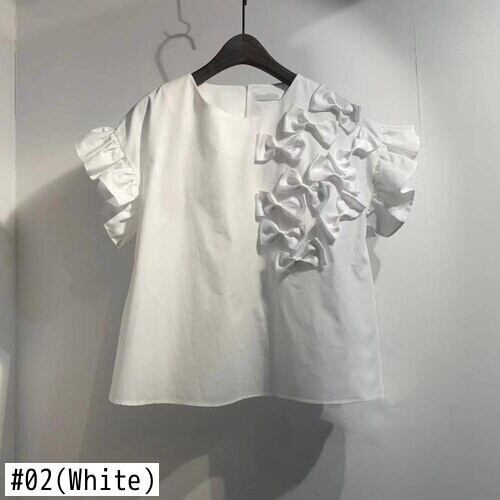 Komiyama 不規則 3d 弓シャツブラウス甘い菌 O ネック半袖シャツトップス夏服 ショート リボン ハーフスリーブ 大人ガーリー スウィート キュート カジュアル サマー 夏物 Oネック | eight
