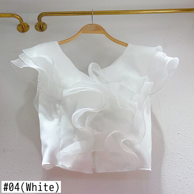 Komiyama 甘いオーガンザ 3D カスケードフリルブラウス夏 V ネックシャツトップスオールマッチスリムクロップトップノースリーブ 大人ガーリー スウィート キュート カジュアル サマー 夏物 Vネック | eight