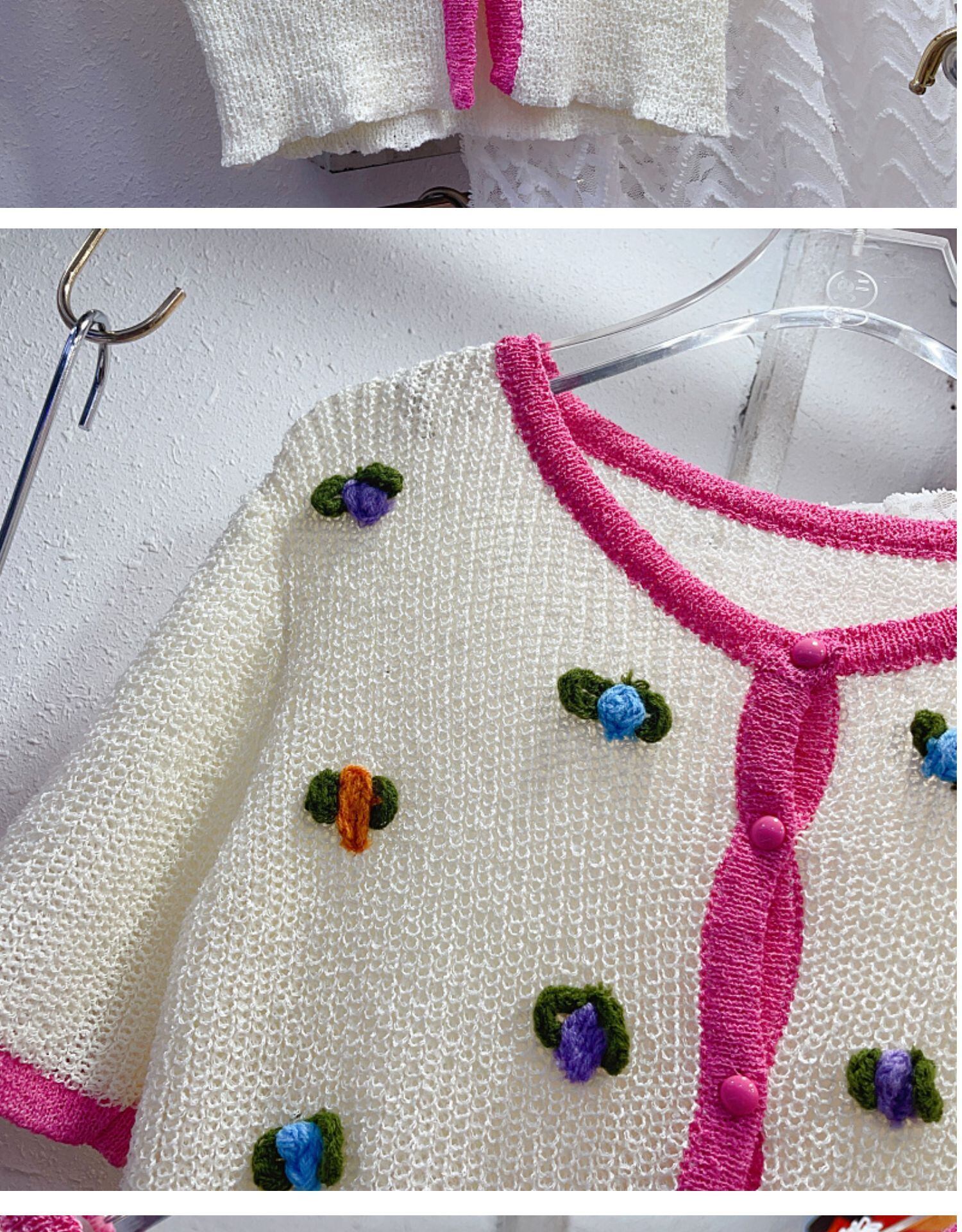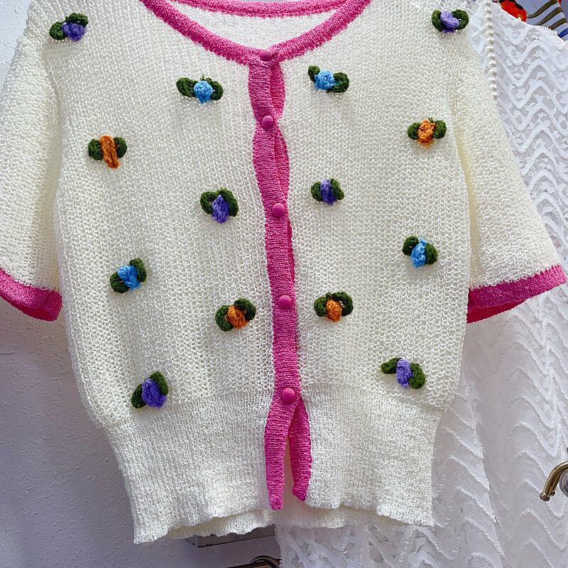 Komiyama ヒットカラー 3d 花セーター V ネック半袖カーディガン春夏服甘いニット ショート ハーフスリーブ 大人ガーリー スウィート キュート カジュアル スプリング 春物 サマー 夏物 花柄 Vネック | eight