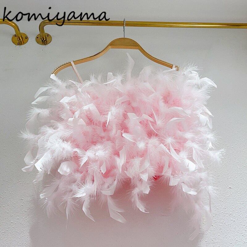 Komiyama 甘い 3d ふわふわ羽夏クロップトップノースリーブプルオーバートップス Feminino セクシー底タンク服 大人ガーリー スウィート キュート カジュアル サマー 夏物 | eight
