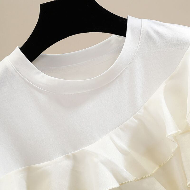 Komiyama 夏甘いカスケード フリル Tシャツ パッチワーク メッシュ Y2k トップス シック ロパ半袖 T シャツ ショート ハーフスリーブ ラッフル 大人ガーリー スウィート キュート カジュアル サマー 夏物 | eight