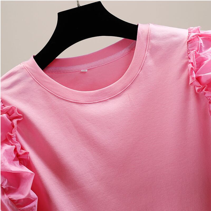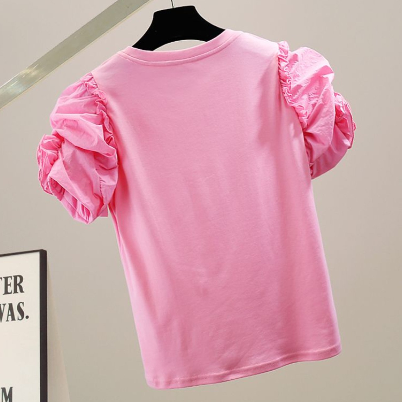 Komiyama 夏甘い 3D フローラル Tシャツシックパフスリーブ Y2k トップス O ネック Ropa 菌 T シャツ 大人ガーリー スウィート キュート カジュアル サマー 夏物 花柄 Oネック | eight