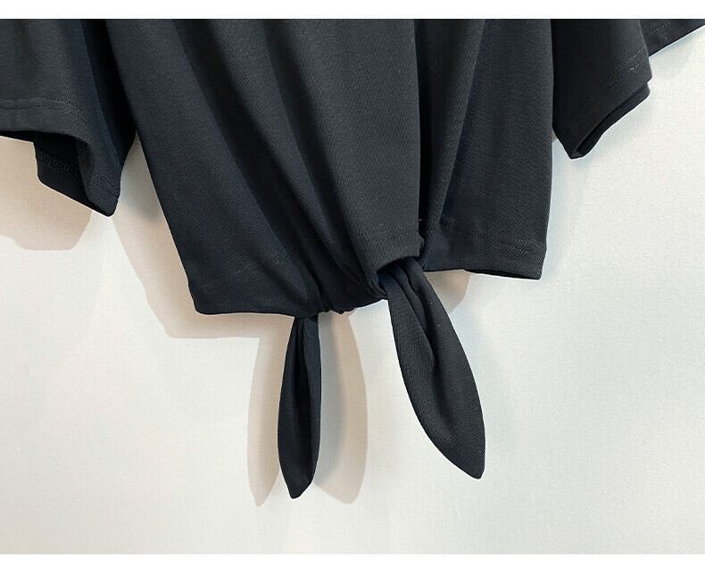 Komiyama 夏パッチワークチェーン Tシャツクロス包帯クロップトップススイートロパラウンドネック半袖 T シャツ 大人ガーリー スウィート キュート カジュアル サマー 夏物 Oネック | eight