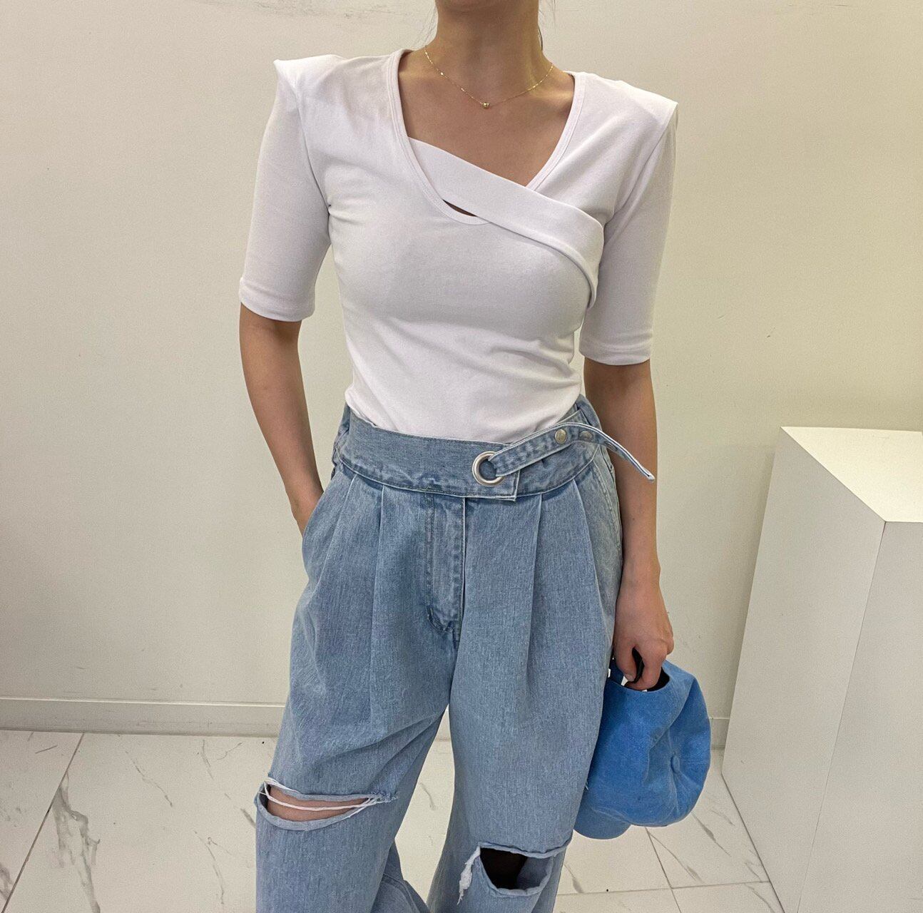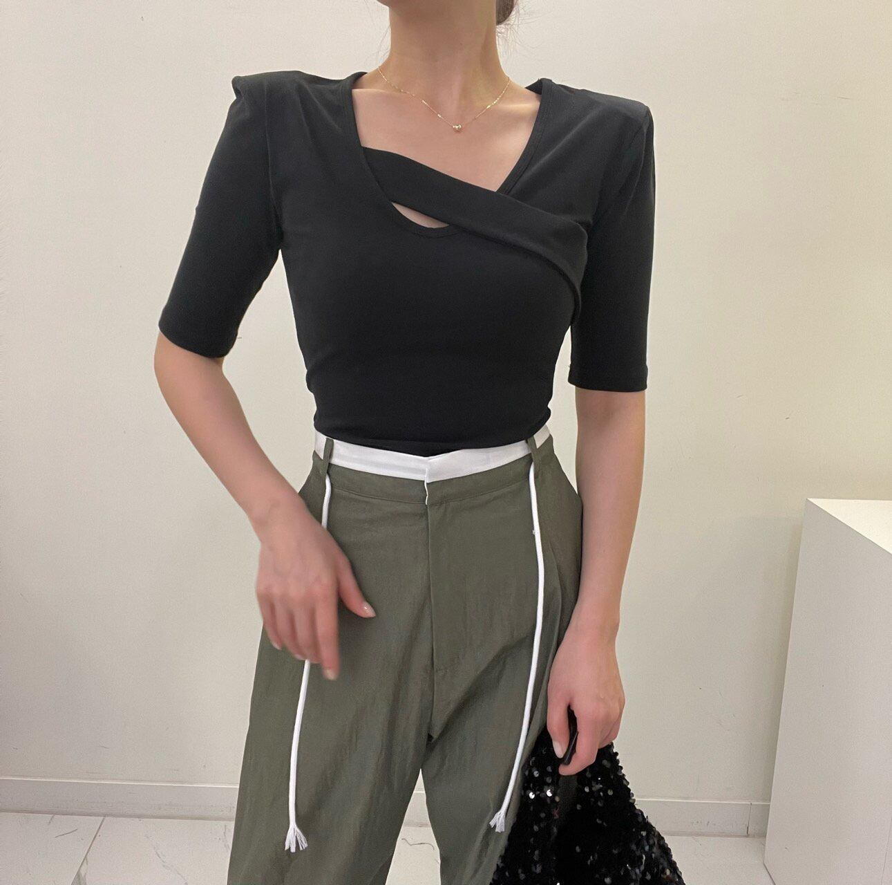 Komiyama 夏シッククロス包帯 T シャツ弾性底 Y2k トップス半袖 Ropa ソリッド T シャツ ショート ハーフスリーブ エラスティック 伸縮 サマー 夏物 Tシャツ ソリッドカラー | eight