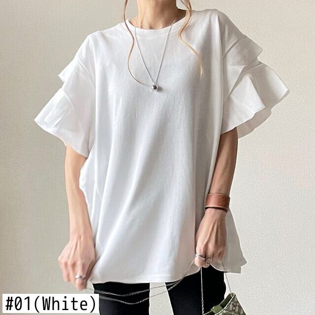 Komiyama 夏カスケードフリル Tシャツ O ネック半袖 Y2k トップス ese シンプル Ropa ルーズオールマッチ Tシャツ ショート ハーフスリーブ サマー 夏物 Oネック ソリッドカラー | eight