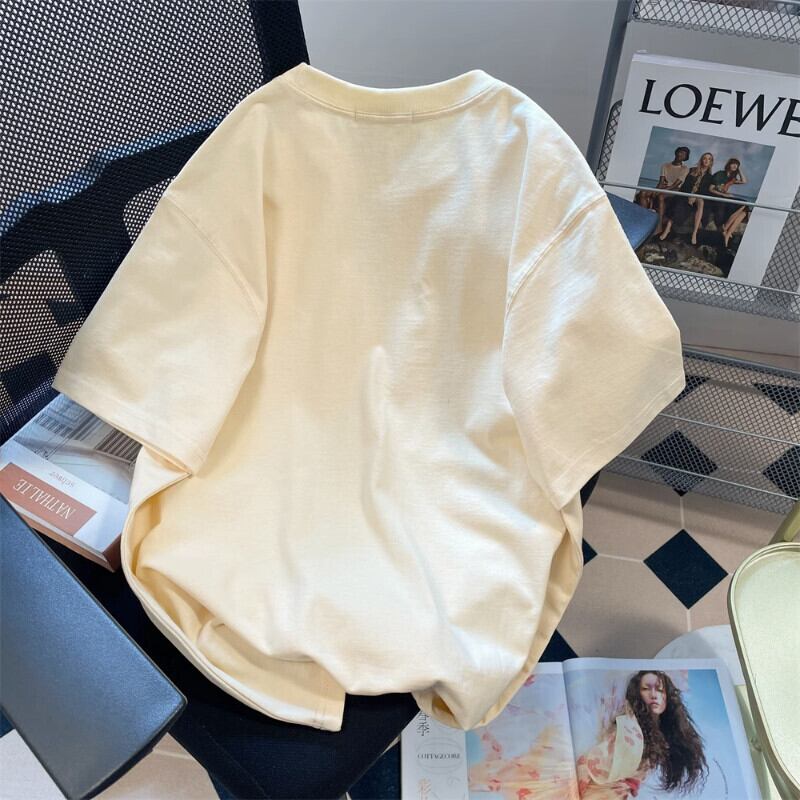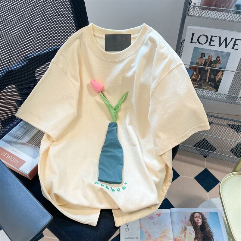 Komiyama Sweet Chic 3D 花柄 Tシャツ 夏モーダ コントラストカラー Y2k トップス O ネック半袖 Ropa ルーズ Tシャツ ショート ハーフスリーブ 大人ガーリー スウィート キュート カジュアル サマー 夏物 Oネック | eight