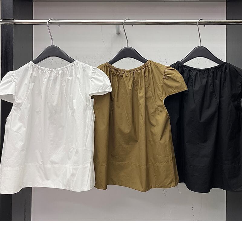 Komiyama スプライス 3D フラワー ルーズ O ネック シャツ ブラウス シャツ トップス ソリッド 半袖 ショート ハーフスリーブ Oネック ソリッドカラー フラワーデザイン | eight
