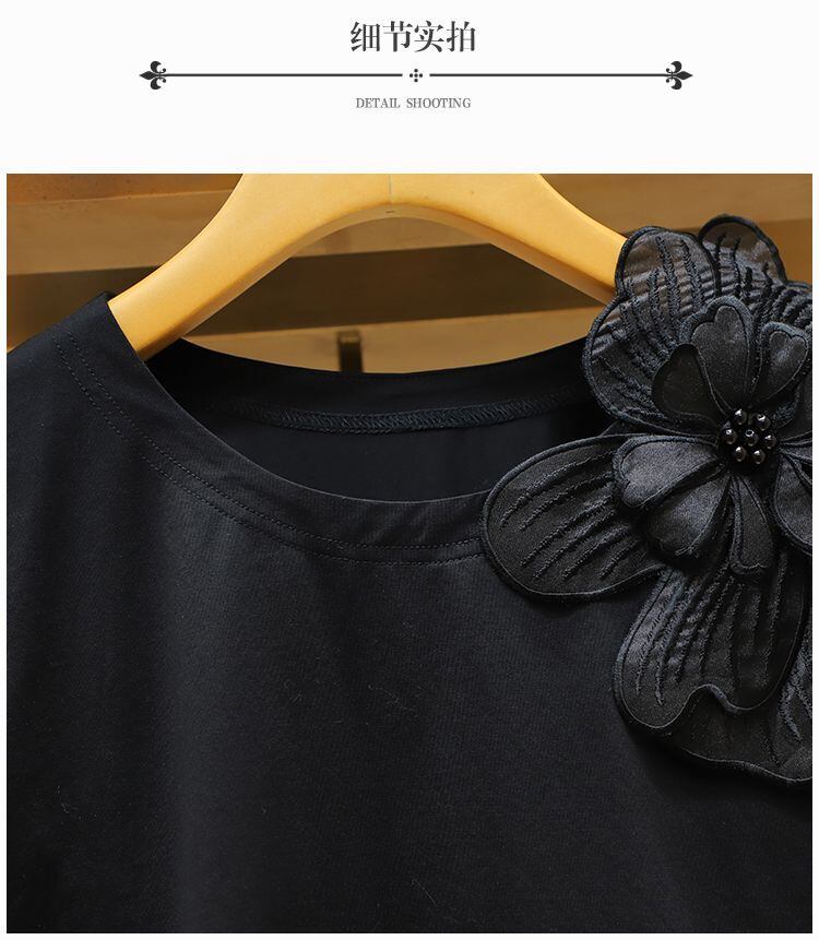 Komiyama 夏パッチワーク 3d フラワー Y2k トップス ラウンドネック半袖 Tシャツ ルーズ Tシャツ Ropa ショート ハーフスリーブ サマー 夏物 Oネック フラワーデザイン | eight