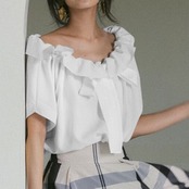 Sweet Fungus スラッシュ ネック レースアップ ボウ シャツ ブラウス 夏 半袖 シャツ トップス ese ショート リボン ハーフスリーブ 大人ガーリー スウィート キュート カジュアル サマー 夏物 | eight