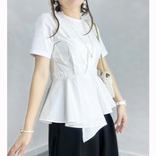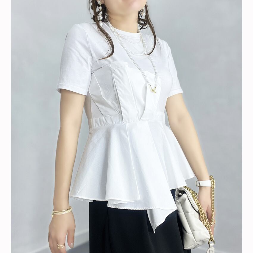 Komiyam シック不規則フリル Tシャツ O ネック半袖 Y2k トップス夏チュニック Ropa フェイク 2 T シャツ ショート ハーフスリーブ ラッフル サマー 夏物 Oネック | eight