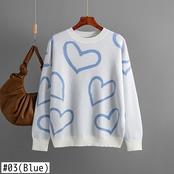 Komiyama 甘い愛ハートプリントレディース O ネック長袖セータールーズプルオーバートップス秋ニット ロング 大人ガーリー スウィート キュート カジュアル オータム 秋物 Oネック | eight
