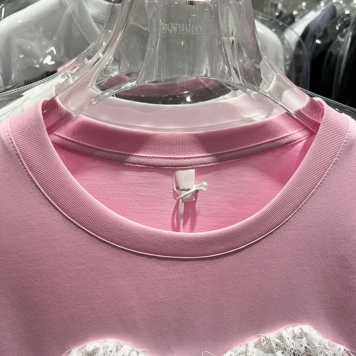 Komiyama スプライスメッシュ Y2k トップスビーズボウ Tシャツ夏秋フェイクツーピース Tシャツルーズ長袖 O ネック Ropa ロング リボン サマー 夏物 オータム 秋物 Oネック | eight