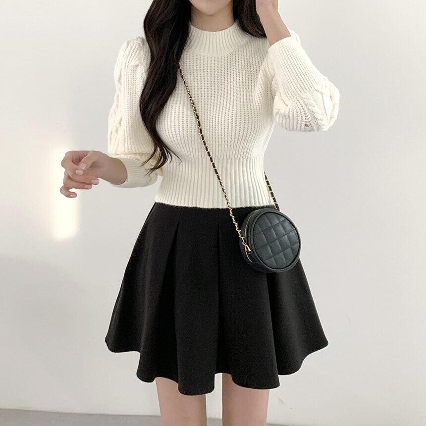 Komiyama タートルネックツイストセーターレディースパフ長袖秋冬暖かいプルオーバートップス甘いニット ロング 大人ガーリー スウィート キュート カジュアル オータム 秋物 ウィンター 冬物 | eight