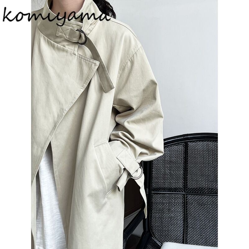 小宮山 スタンドネック 長袖 トレンチコート レースアップ チュニック ジャケット Feminino OL Jaquetas バックスプリット Casaco ロング 会社 学校 通勤や通学にも | eight