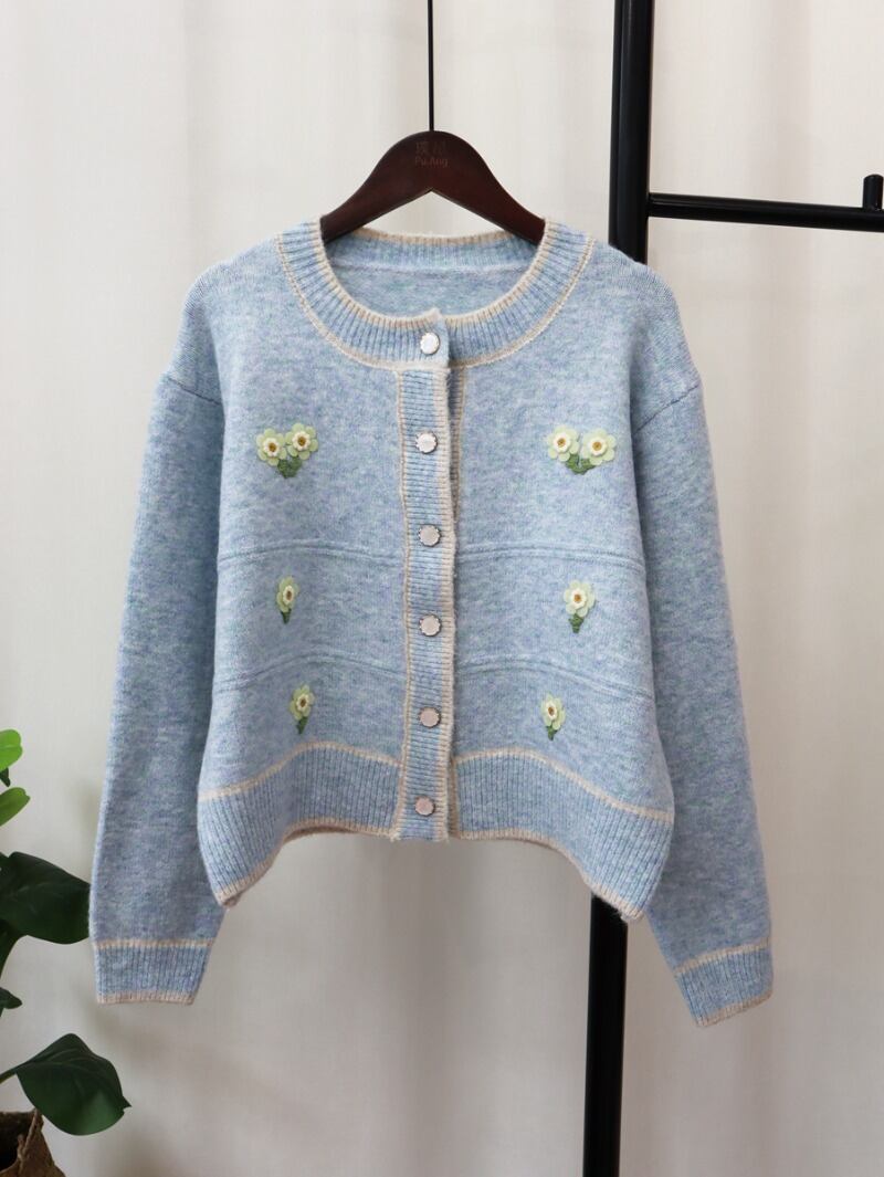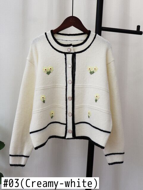 Komiyama 甘いヒットカラー花柄カーディガン絶妙ボタンセーター秋 O ネックレディース優しいニットトップス 大人ガーリー スウィート キュート カジュアル オータム 秋物 Oネック | eight