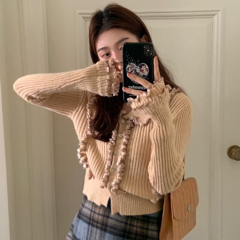 Komiyama Fungus カーディガンターンダウンカラーセーター秋レディースフルスリーブニットトップス甘い新鮮コート 大人ガーリー スウィート キュート カジュアル オータム 秋物 | eight