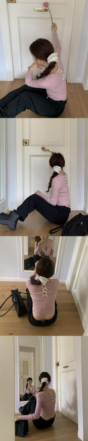 パッチワーク弓セーター秋甘いレディース中空アウト Ropa 長袖プルオーバートップス O ネックニット ロング リボン 大人ガーリー スウィート キュート カジュアル オータム 秋物 Oネック | eight