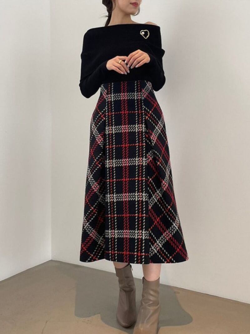 ウエスト A ラインスカートスタイルチェック柄 Faldas Feminino スカートレディース甘いペチコート秋 大人ガーリー スウィート キュート カジュアル オータム 秋物 Aライン | eight
