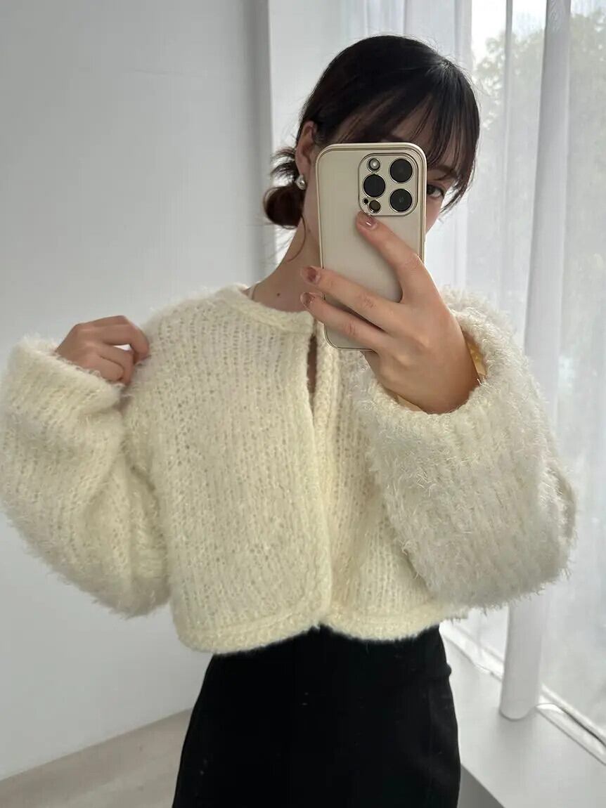 豪華カーディガン長袖セーター秋冬レディース O ネック Ropa 甘いニットトップス ロング 大人ガーリー スウィート キュート カジュアル オータム 秋物 ウィンター 冬物 Oネック | eight